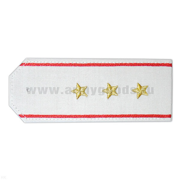 Погоны «машинная вышивка» из рубаш. ткани белые с вышит. красн. кантом с вышит. звездами (ст. прапорщик)