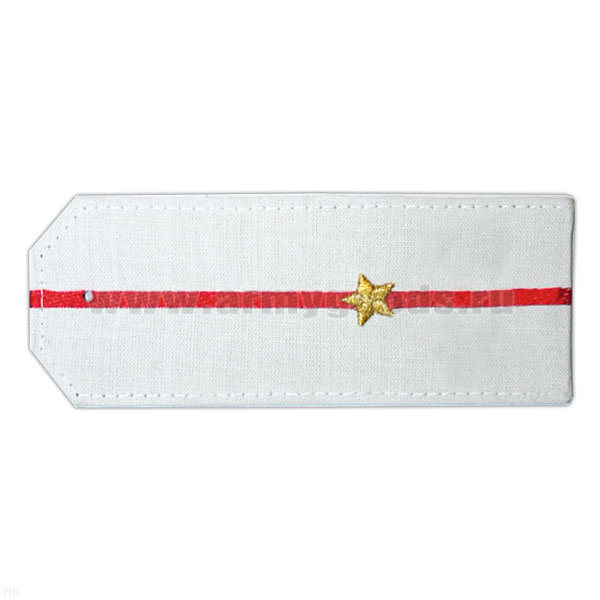 Погоны «машинная вышивка» из рубаш. ткани белые с 1 вышит. красн. просв. с вышитой звездой (мл. лейтенант)