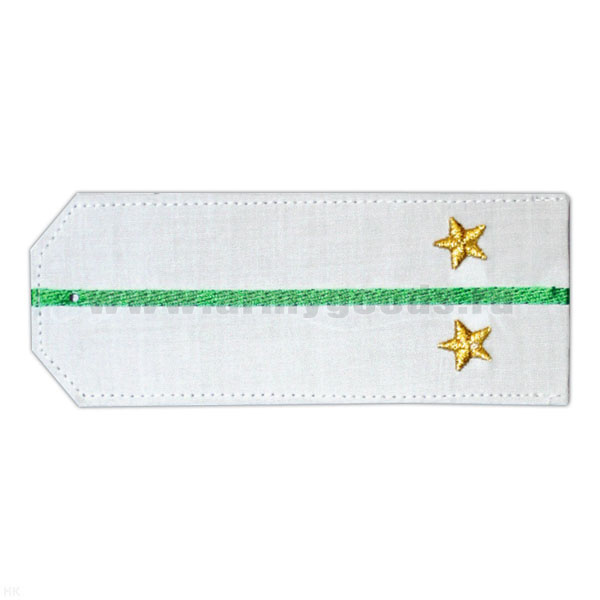 Погоны «машинная вышивка» из рубаш. ткани белые с 1 вышит. зел. просв. с вышит. звездами (лейтенант)