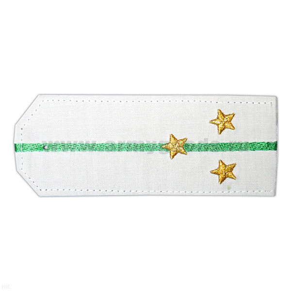 Погоны «машинная вышивка» из рубаш. ткани белые с 1 вышит. зел. просв. с вышит. звездами (ст. лейтенант)