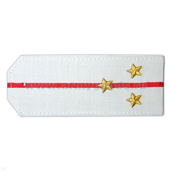 Погоны «машинная вышивка» из рубаш. ткани белые с 1 вышит. красн. просв. с вышит. звездами (ст. лейтенант)