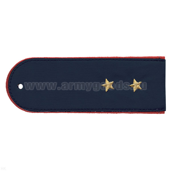 Погоны «машинная вышивка» из рубаш. ткани Полиция темно-синие с вышит. красн. кантом и звездами(прапорщик)