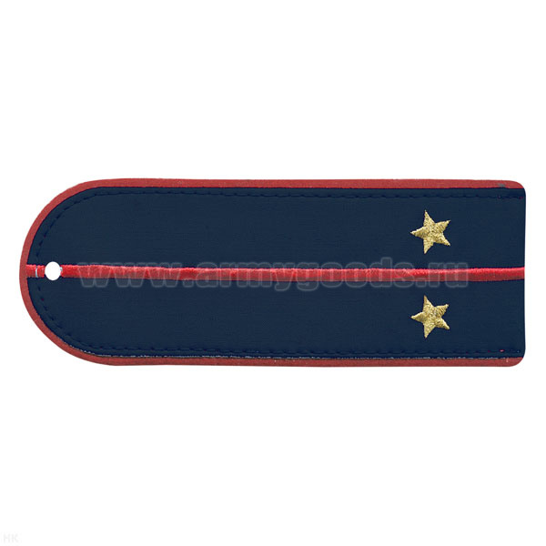 Погоны «машинная вышивка» из рубаш. ткани Полиция темно-синие с вышит. 1 красн пр. и выш звездами (лейтенант)