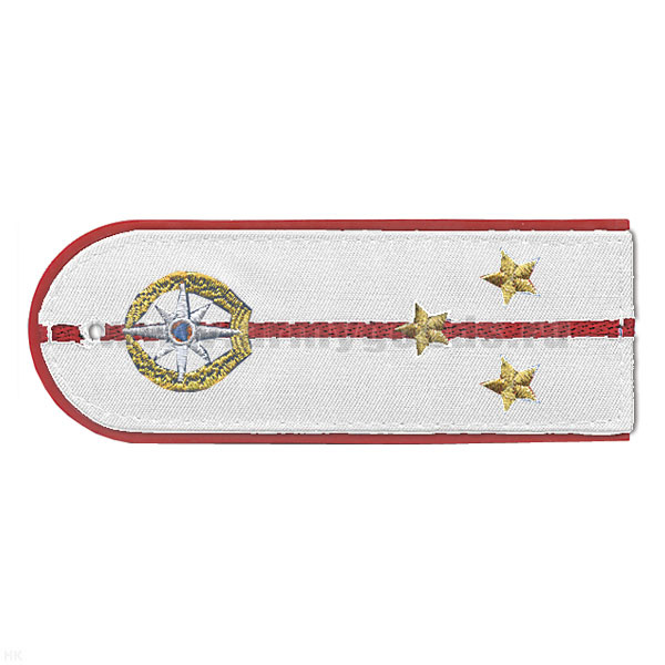 Погоны «машинная вышивка» из рубаш. ткани МЧС белые с вышит. эмблемой (старший лейтенант) пластик