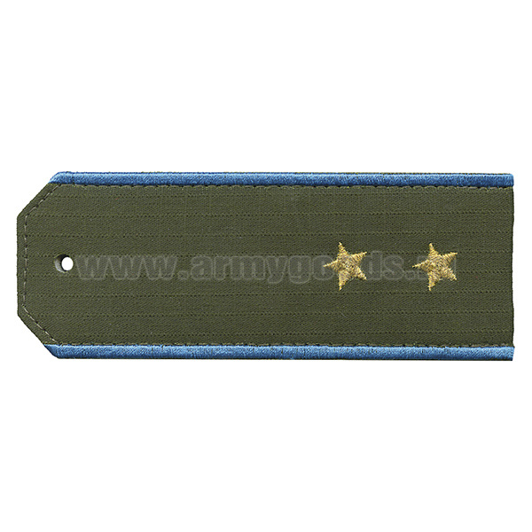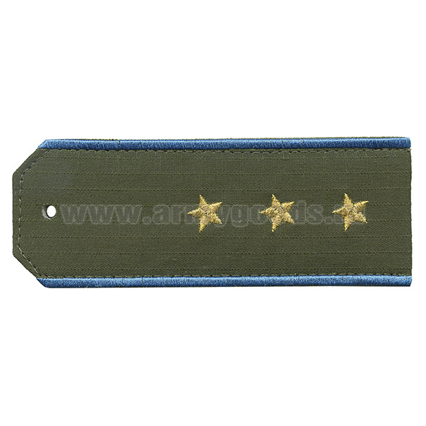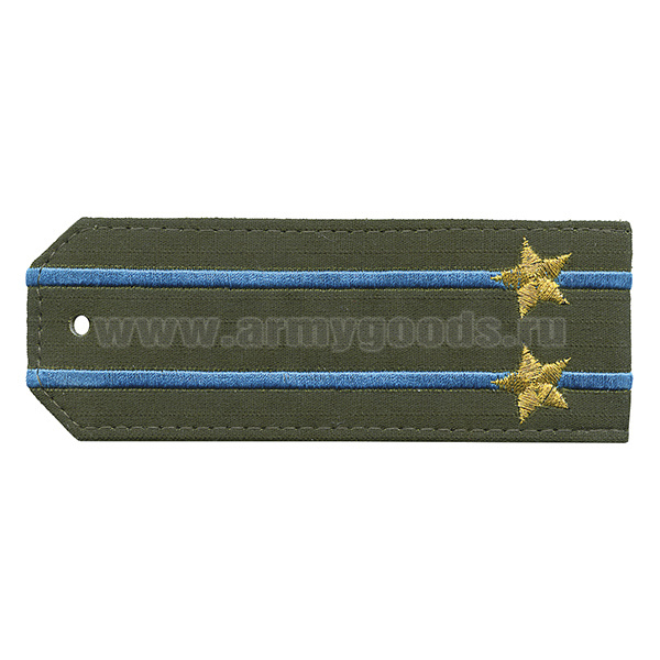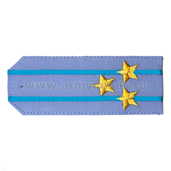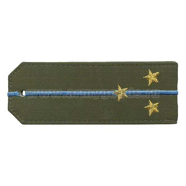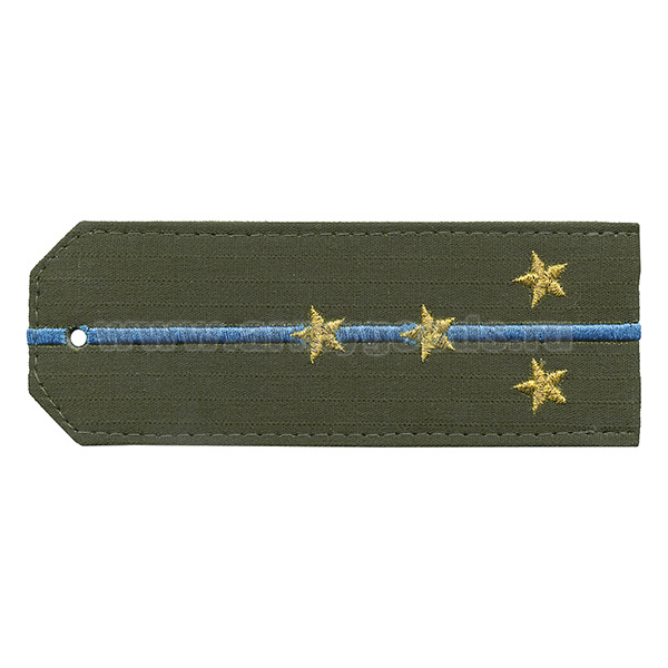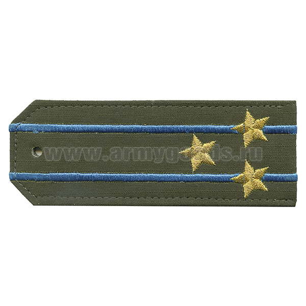 Погоны «машинная вышивка» оливк. (ткань rip-stop) c вышит. голубым кантом с вышитыми звездами (старший прапорщик) на костюм офисный