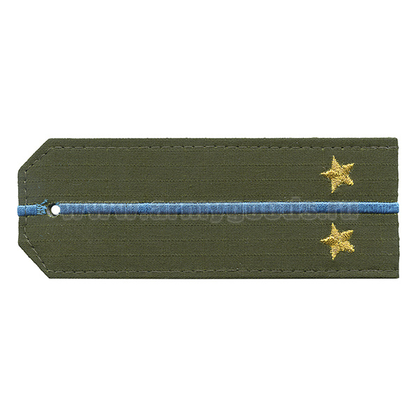Погоны «машинная вышивка» оливк. (ткань rip-stop) c 1 вышит. голуб. просв. с вышитыми звездами (ст. лейтенант) на костюм офисный