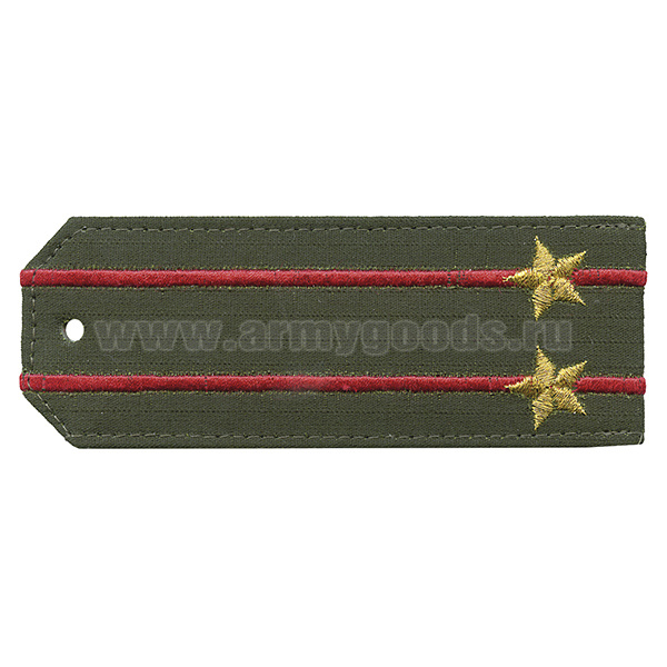 Погоны «машинная вышивка» оливк. (ткань rip-stop) c 2 вышит. красн. просв. с вышитыми звездами (подполковник) на костюм офисный