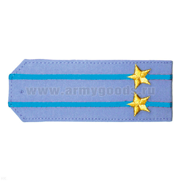 Погоны «машинная вышивка» из рубаш. ткани серо-голуб. с 2 вышит. голуб. просв. с вышит. звездами (подполковник)