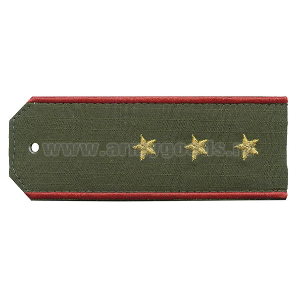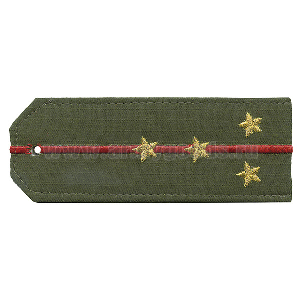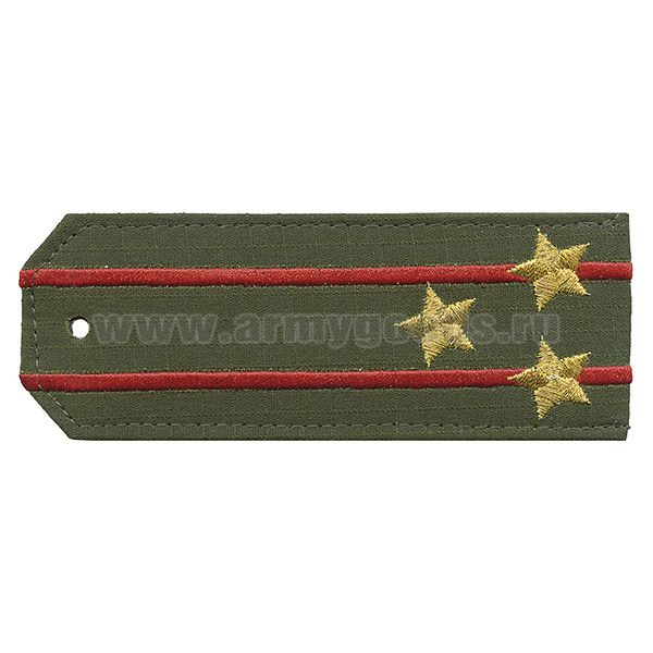 Погоны «машинная вышивка» оливк. (ткань rip-stop) c вышит. красн. кантом с вышитыми звездами (старший прапорщик) на костюм офисный
