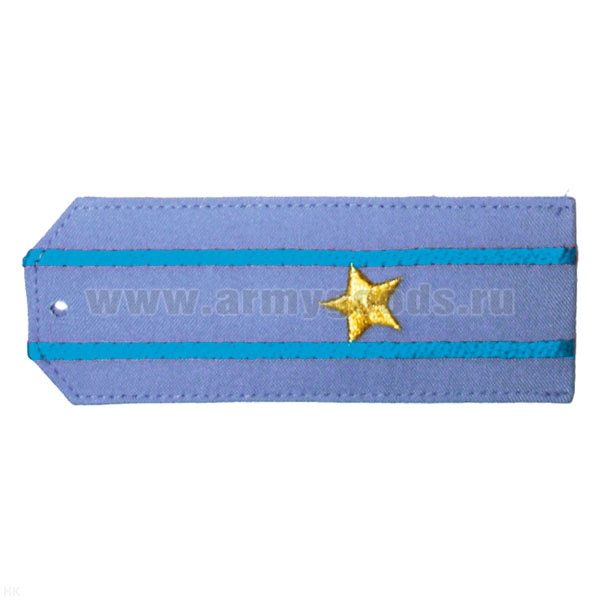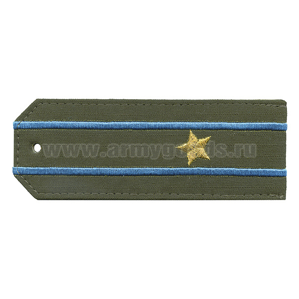 Погоны «машинная вышивка» оливк. (ткань rip-stop) c вышит. голубым кантом с вышитыми звездами (прапорщик) на костюм офисный
