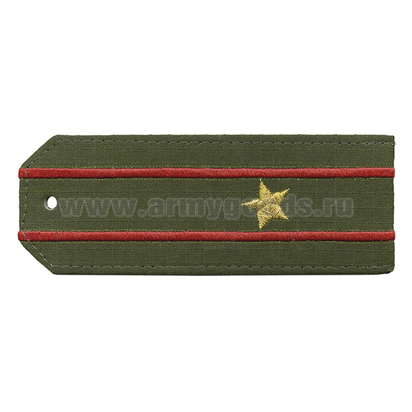 Погоны «машинная вышивка» оливк. (ткань rip-stop) c 1 вышит. красн. просв. с вышитыми звездами (старший лейтенант) на костюм офисный