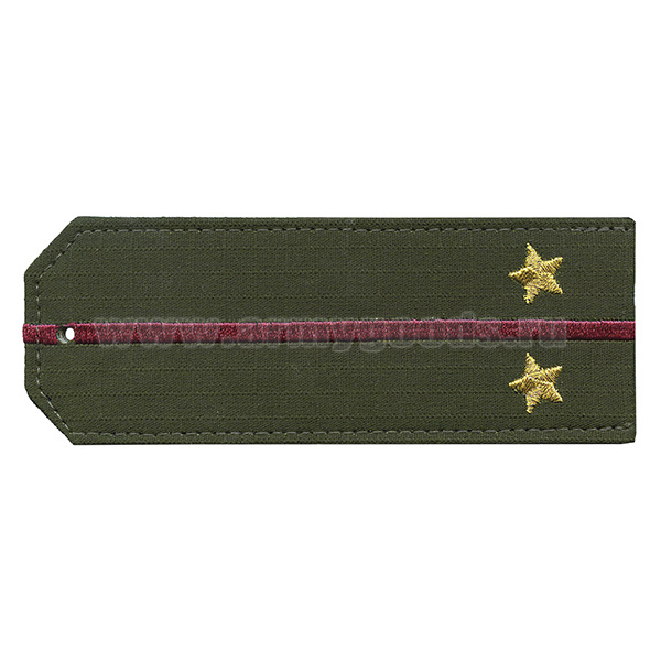 Погоны «машинная вышивка» оливк. (ткань rip-stop) c 1 вышит. красн. просв. с вышитыми звездами (лейтенант) на костюм офисный