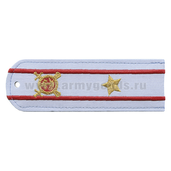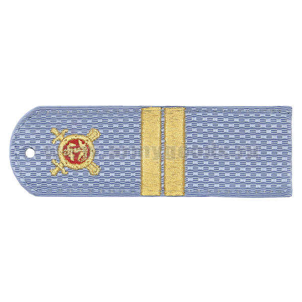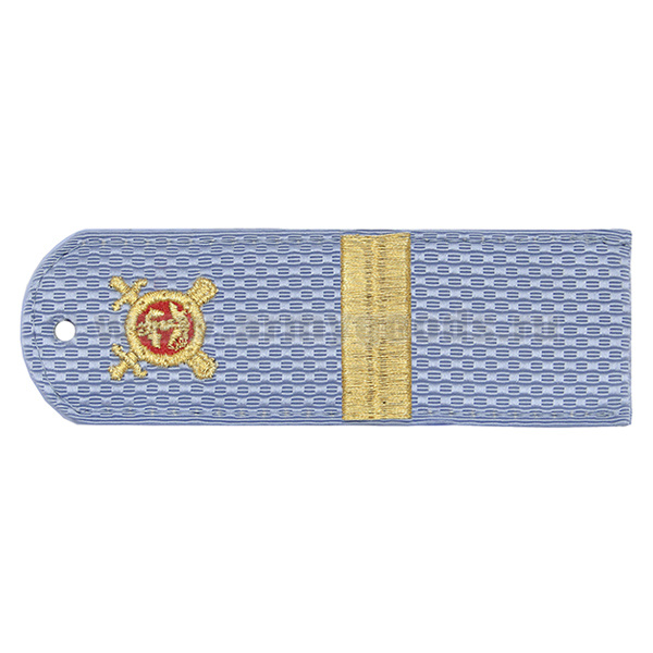 Погоны «машинная вышивка» из рубаш. ткани Полиция без канта бледно-голуб. с вышит. эмблемой (младший лейтенант) пластик