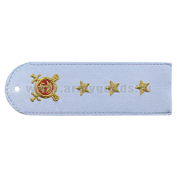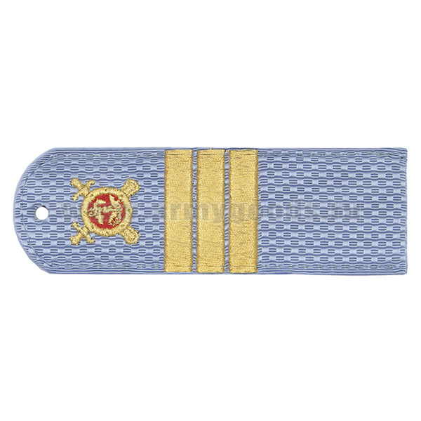 Погоны «машинная вышивка» из рубаш. ткани Полиция без канта бледно-голуб. с вышит. эмблемой (капитан) пластик