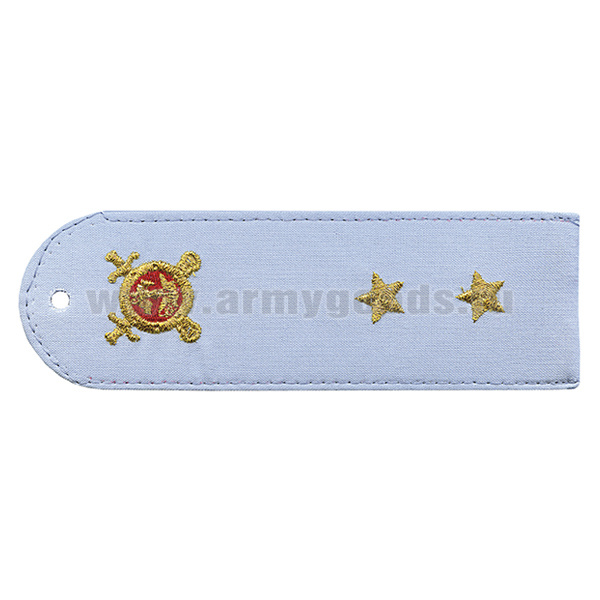 Погоны «машинная вышивка» из рубаш. ткани Полиция без канта бледно-голуб. с вышит. эмблемой (майор) пластик