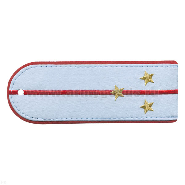 Погоны «машинная вышивка» из рубаш. ткани Полиция бледно-голубые с 1 вышит. красн. просв. с вышит. звездами (ст. лейтенант)