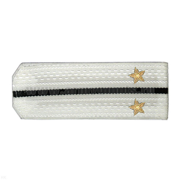 Погоны ВМФ белые с 1 черн. просв., вышит. канителью (лейтенант)