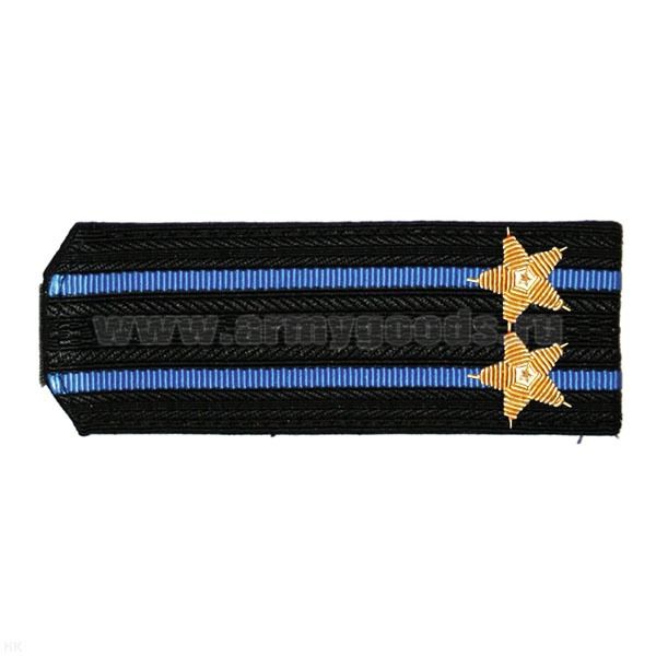 Погоны Авиации ВМФ черн. с 2 голуб. просв., вышит. канителью (подполковник)