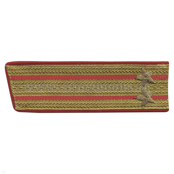 Погоны парадные золотые (металлиз.) с 2 красн. просв., вышит. канителью (подполковник) со скосом