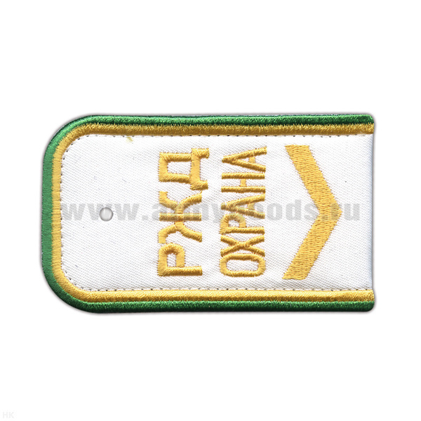 Погоны РЖД ОХРАНА вышит. белые ("РЖД ОХРАНА, узкая галочка)