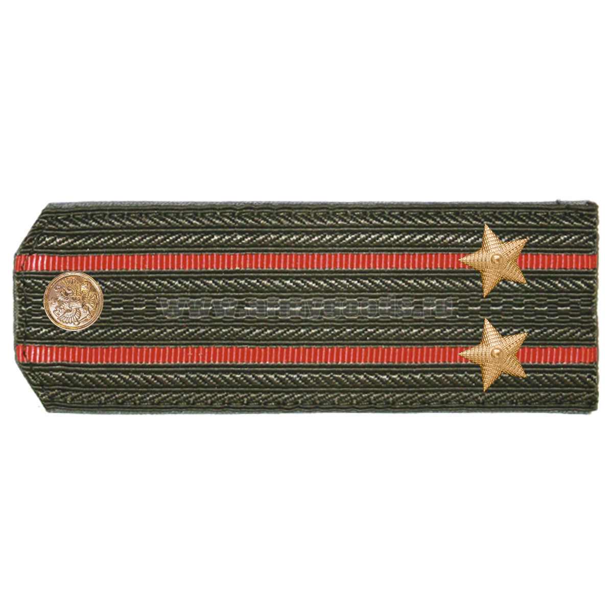 • Погоны оливк. 2 красных просвета, укомпл. мет. фурнитурой (подполковник) пластик