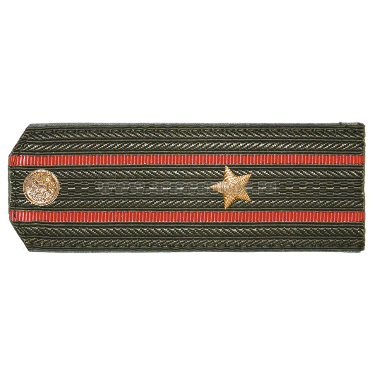 Погоны оливк. 2 красных просвета, укомпл. мет. фурнитурой (майор) пластик