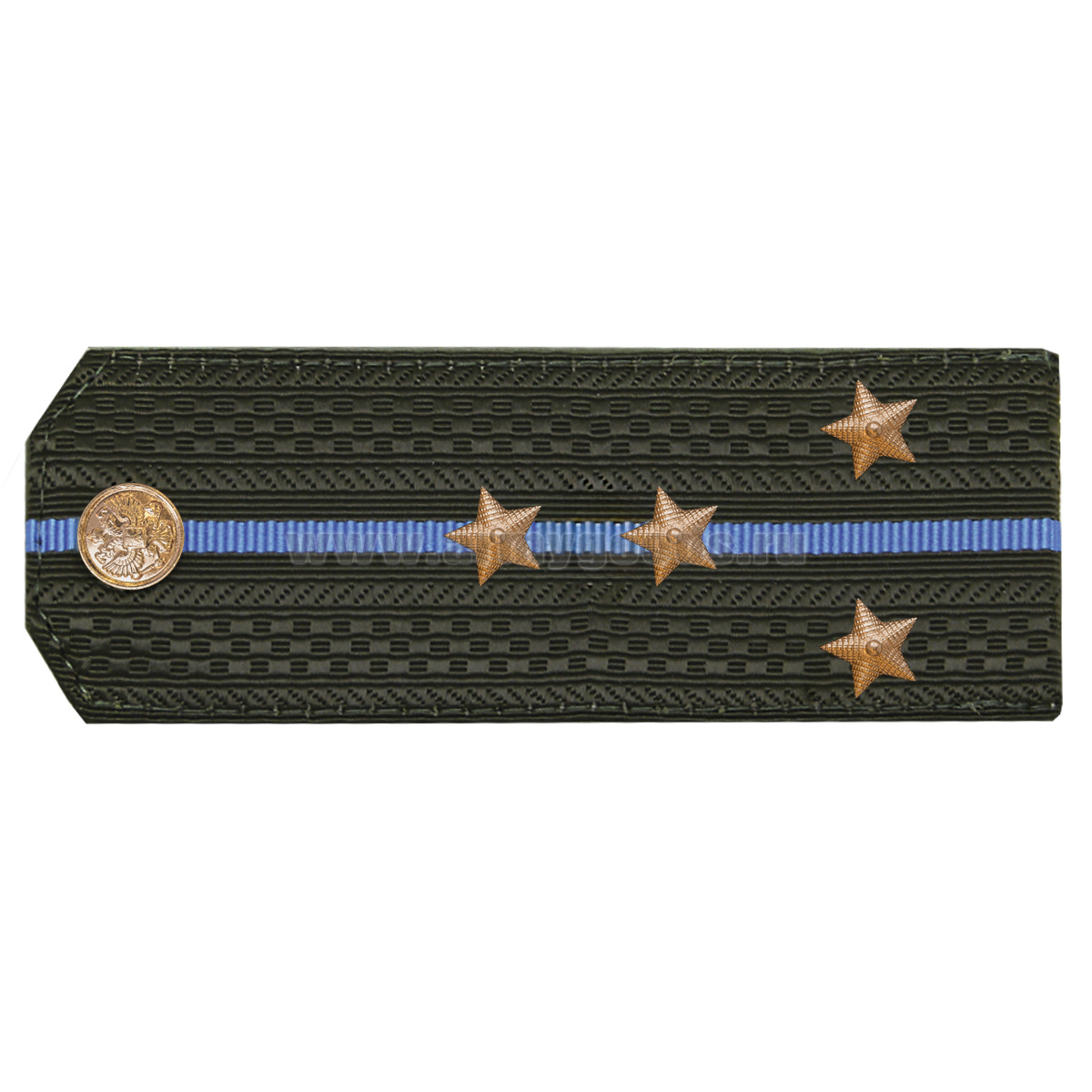 Погоны оливк. 1 голубой просвет, укомпл. мет. фурнитурой (капитан) пластик