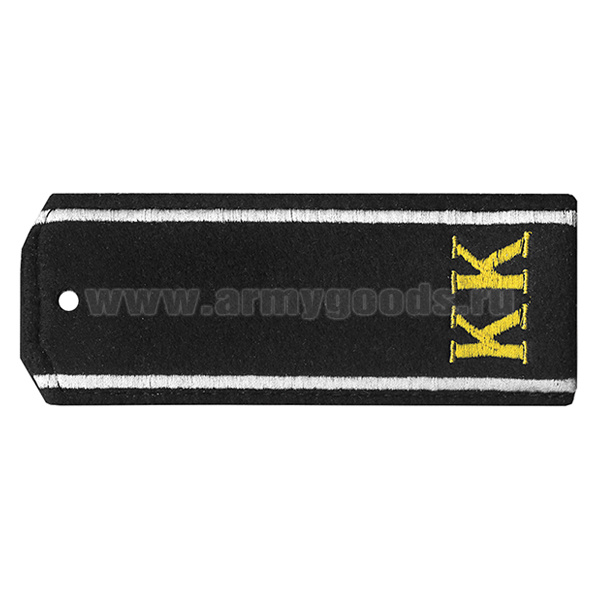 Погоны черные суконные с вышитым белым кантом  и желтыми буквами «КК»