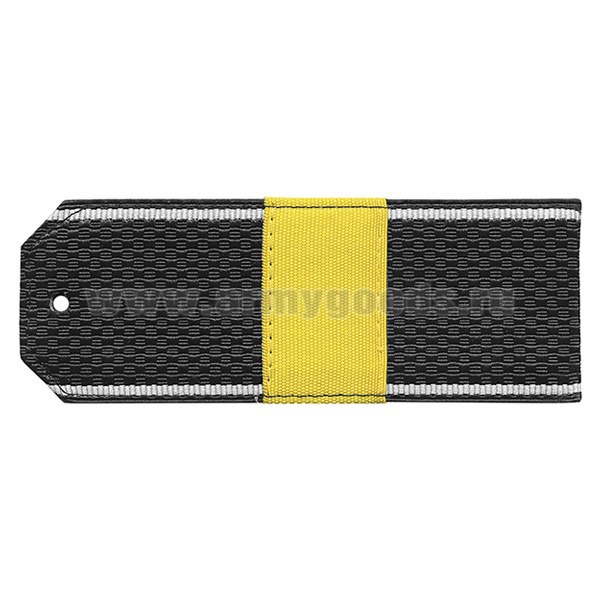 Погоны черн. белый кант с нашитым желт.шелковым галуном (ст. сержант) на пластике