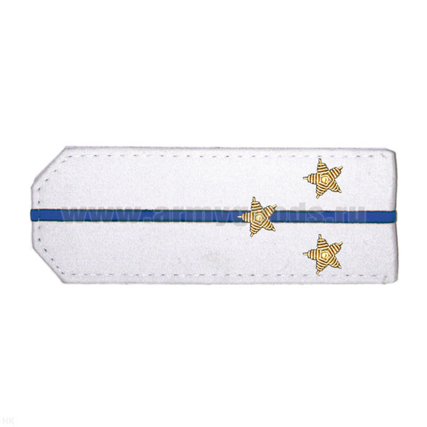 Погоны из рубаш. ткани белые с вышит. 1 вас. просв., вышит. канителью (ст. лейтенант)