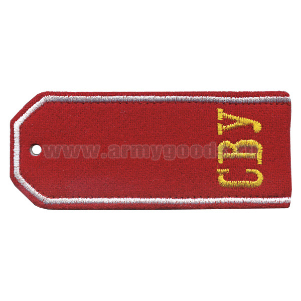 Погоны красн. суконные с вышитым белым кантом и желтыми буквами «СВУ»