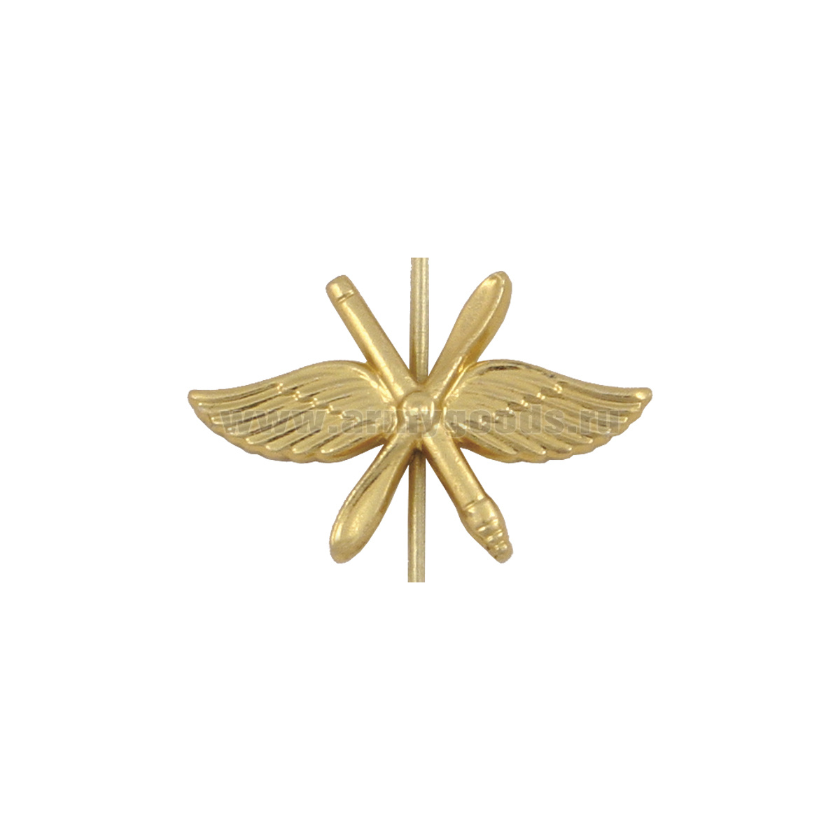 Эмбл. петл. мет. ВВС (крылья, пропеллер и зенитная пушка) зол.