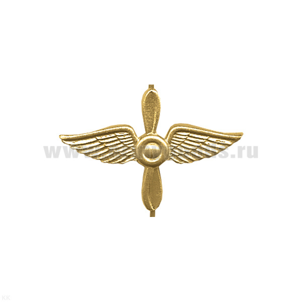 Эмбл. петл. мет. ВВС (крылья, пропеллер и зенитная пушка) зол.