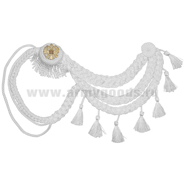 Аксельбант ДМБ с эполетом, кистями и мет. орлом РФ (белый)
