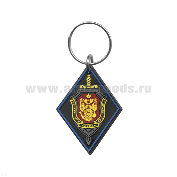 Брелок пластизол. ФСБ (ромб) Черный фон васильковый кант