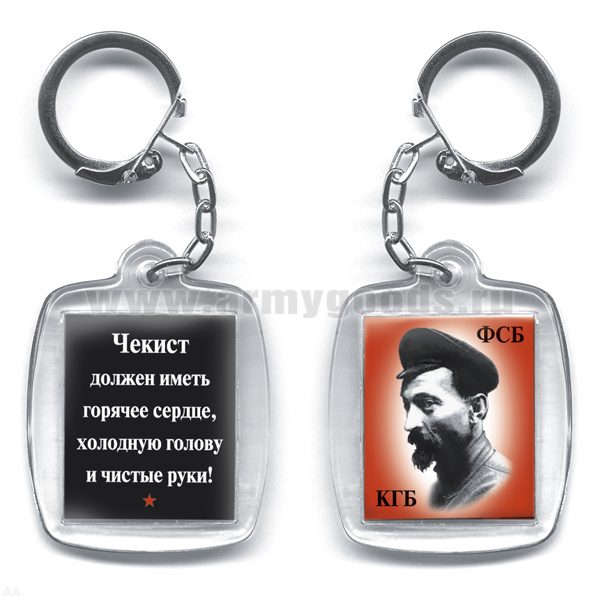 Брелок пластик. 2-стор. КГБ ФСБ / Чекист должен иметь горячее сердце...(Дзержинский)