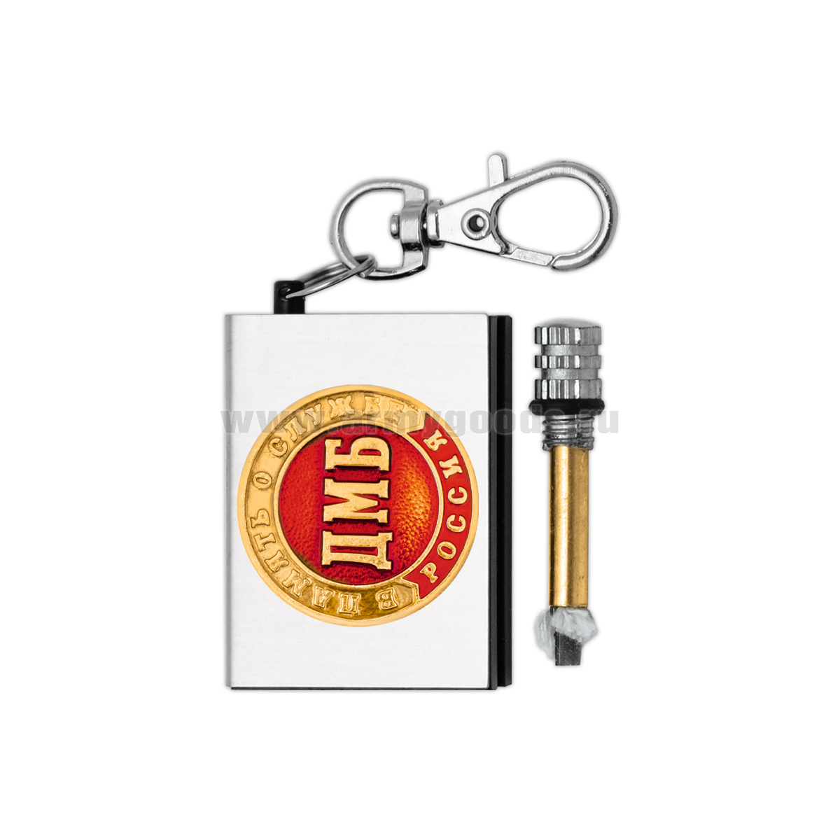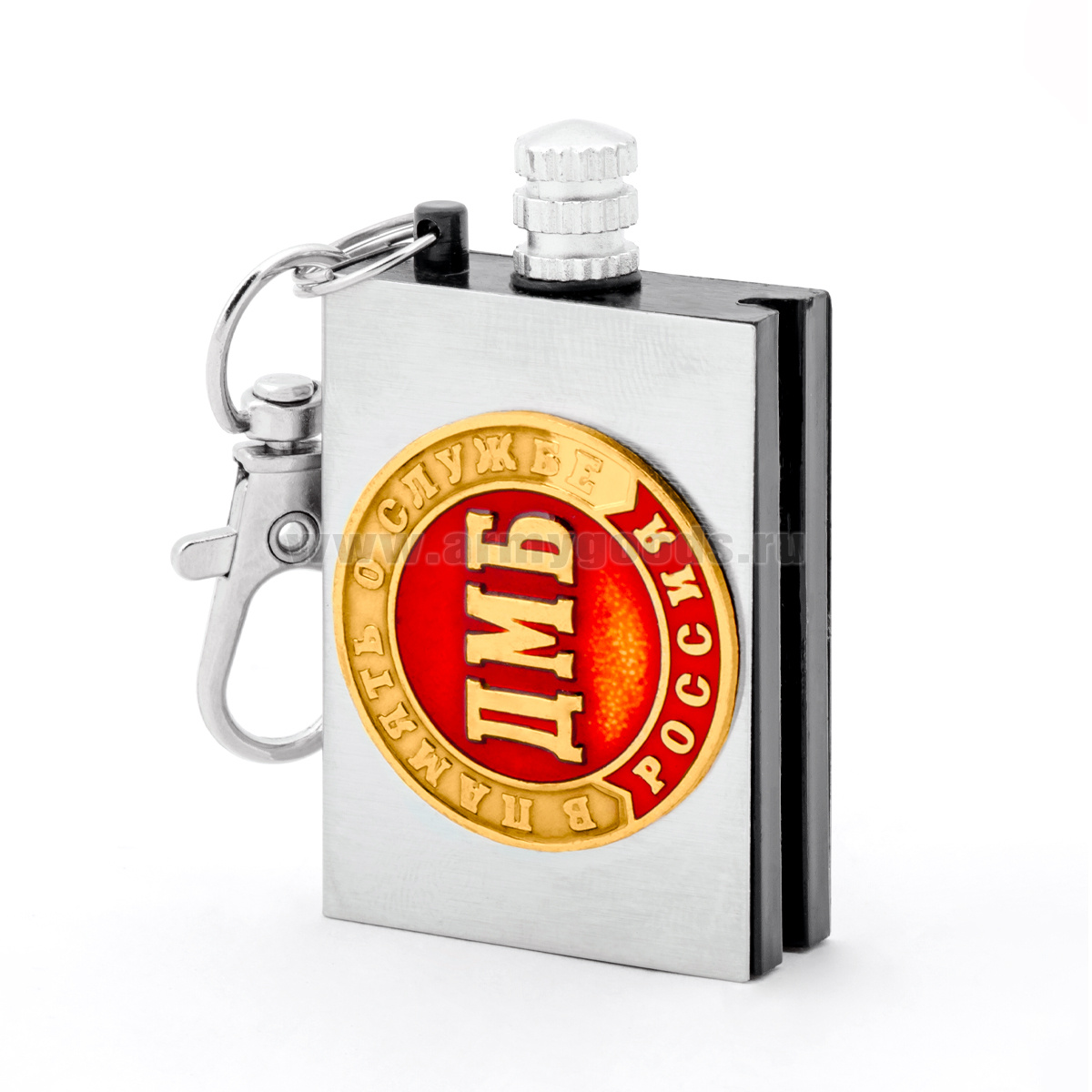 Брелок мет. Вечная спичка (огниво) с мет. накл. ДМБ (В память о службе)