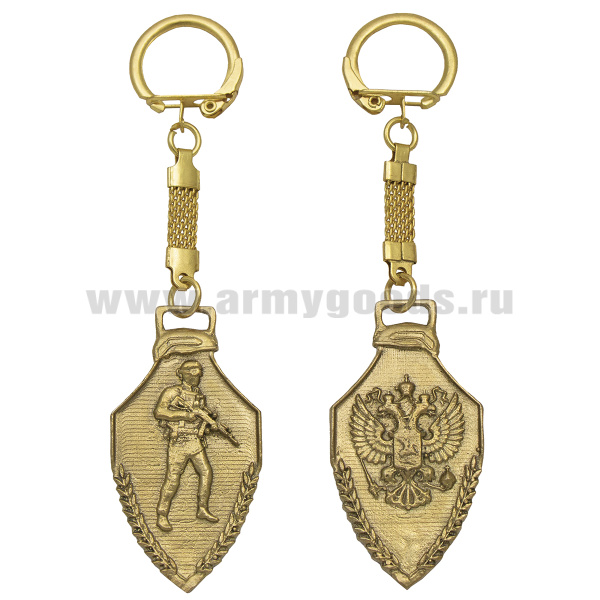 Брелок мет. двухсторонний Боец с автоматом / Герб РФ (щит)