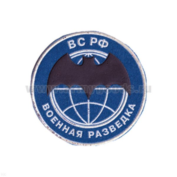 Шеврон пластизолевый Военная разведка ВС РФ (лет. мышь) голуб.