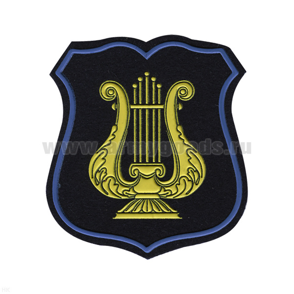 Шеврон пласт Военно-оркестровая служба ВС (иссиня-черный с голубым кантом) щит