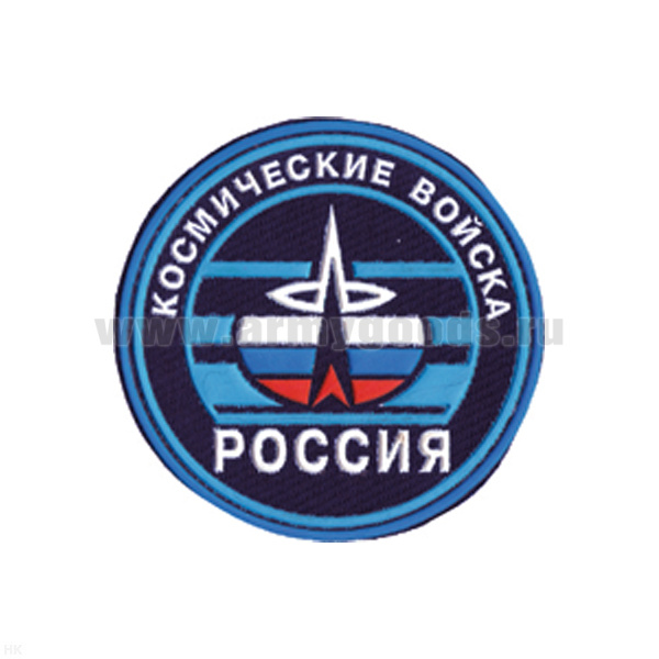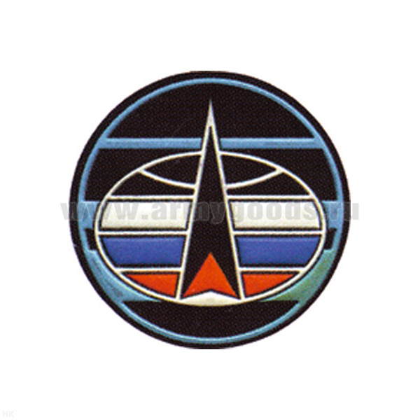 Шеврон пластизолевый Россия Космические войска (кругл. с эмбл. и надп.)