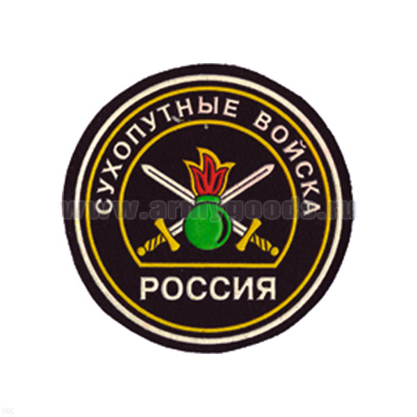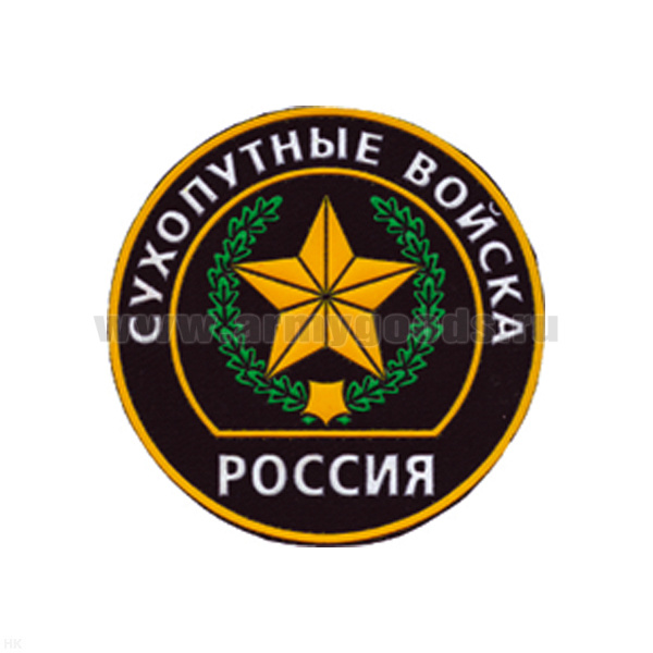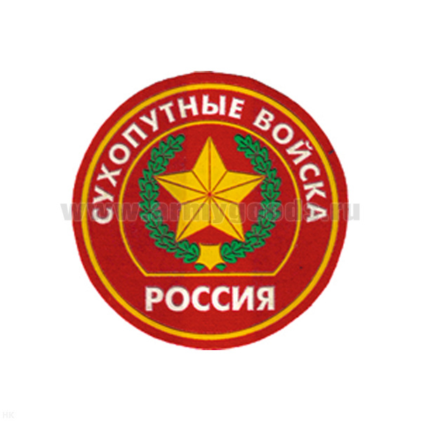 Шеврон пластизолевый Россия Сухоп. войска (кругл. с эмбл. нов/обр и надп.)