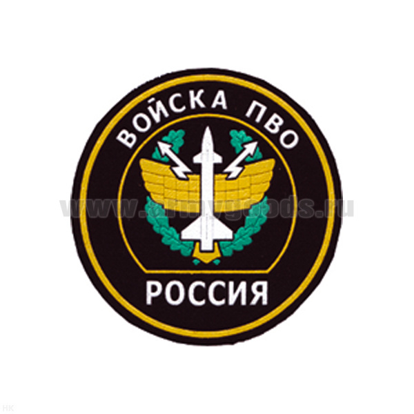 Шеврон пластизолевый Россия Войска ПВО (кругл. с эмбл. и надп.)