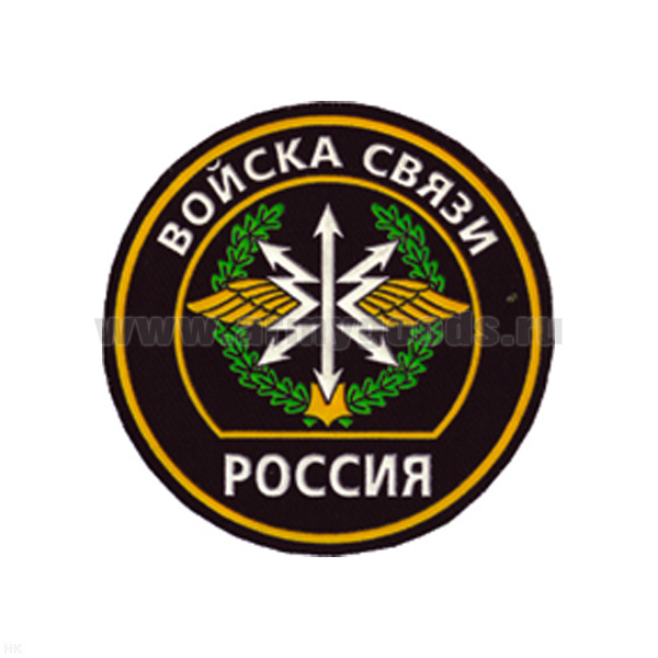 Шеврон пластизолевый Россия Войска связи (кругл. с эмбл. и надп.)