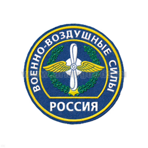 Шеврон пластизолевый Россия ВВС (кругл. с эмбл. и надп.) голуб.