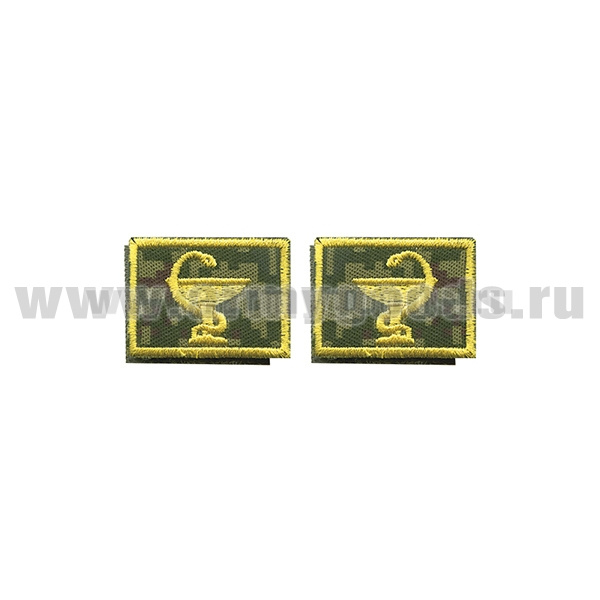 Нашивки вышит. Медицинская служба (нов/обр, желт.) петличные эмблемы на липучке (фон - "русская цифра")