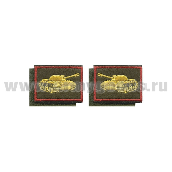 Нашивки вышит. Танковые войска (нов/обр) оливк. фон, красный кант петличные эмблемы на липучке