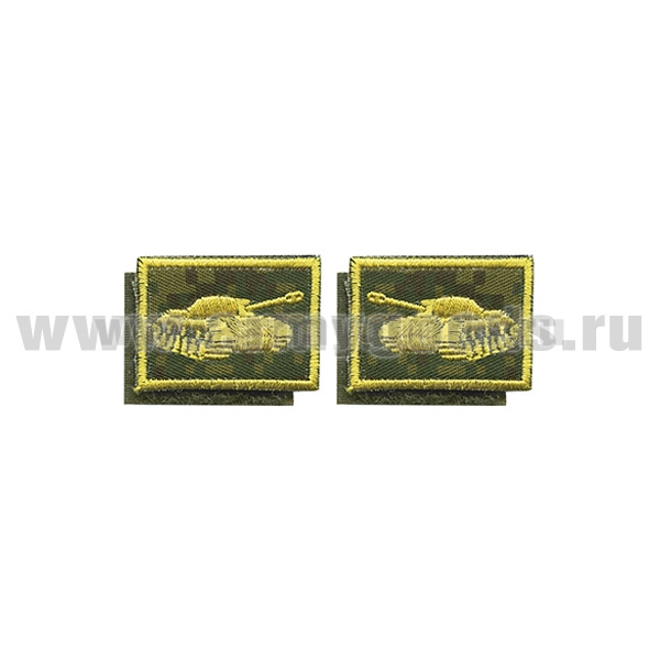Нашивки вышит. Танковые войска (нов/обр, желт.) петличные эмблемы на липучке (фон - "русская цифра")