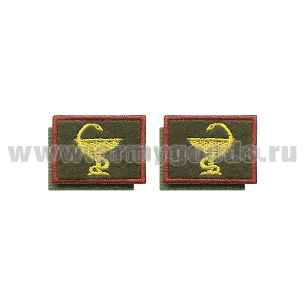 Нашивки вышит. Медицинская служба (нов/обр) оливк. фон, красный кант петличные эмблемы на липучке