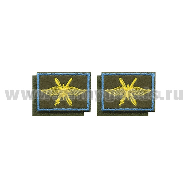Нашивки вышит. Воздушно-космические силы (желт. эмбл, голубой кант) петличные эмблемы на липучке